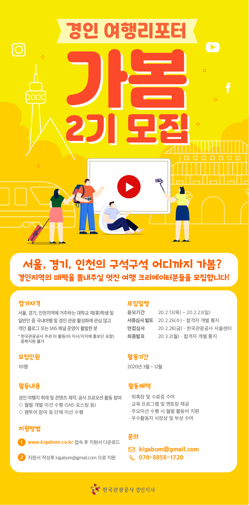 활동내용 : 경인 여행지 취재 및 콘텐츠 제작, 공사 프로모션 활동 참여