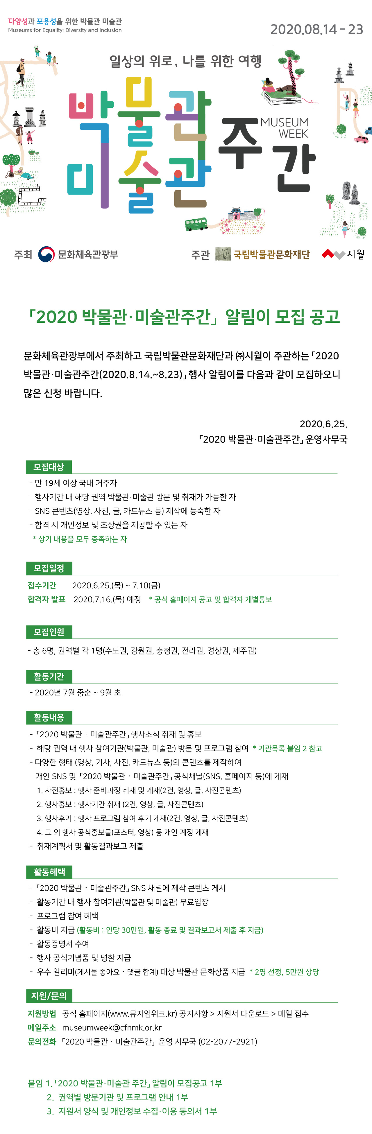 문화체육관광부에서 '2020 박물관·미술관 주간 행사 알림이를 모집합니다!